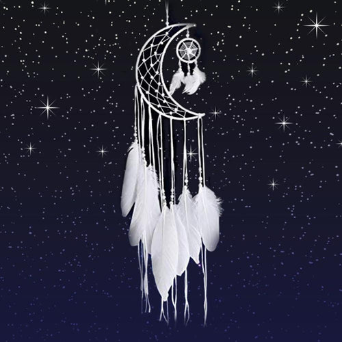 New Indian Style Dreamcatcher Moon Handmade Wind Chimes Wall Ornament Girls Room Decoration Feather Dream Catcher
